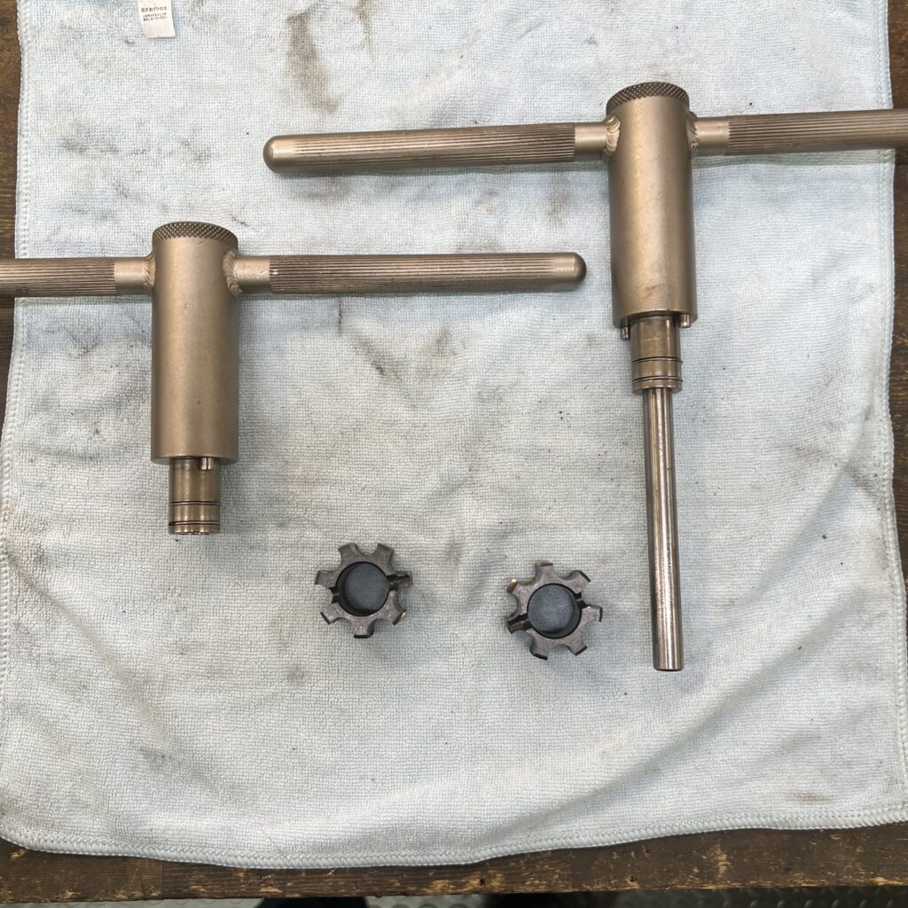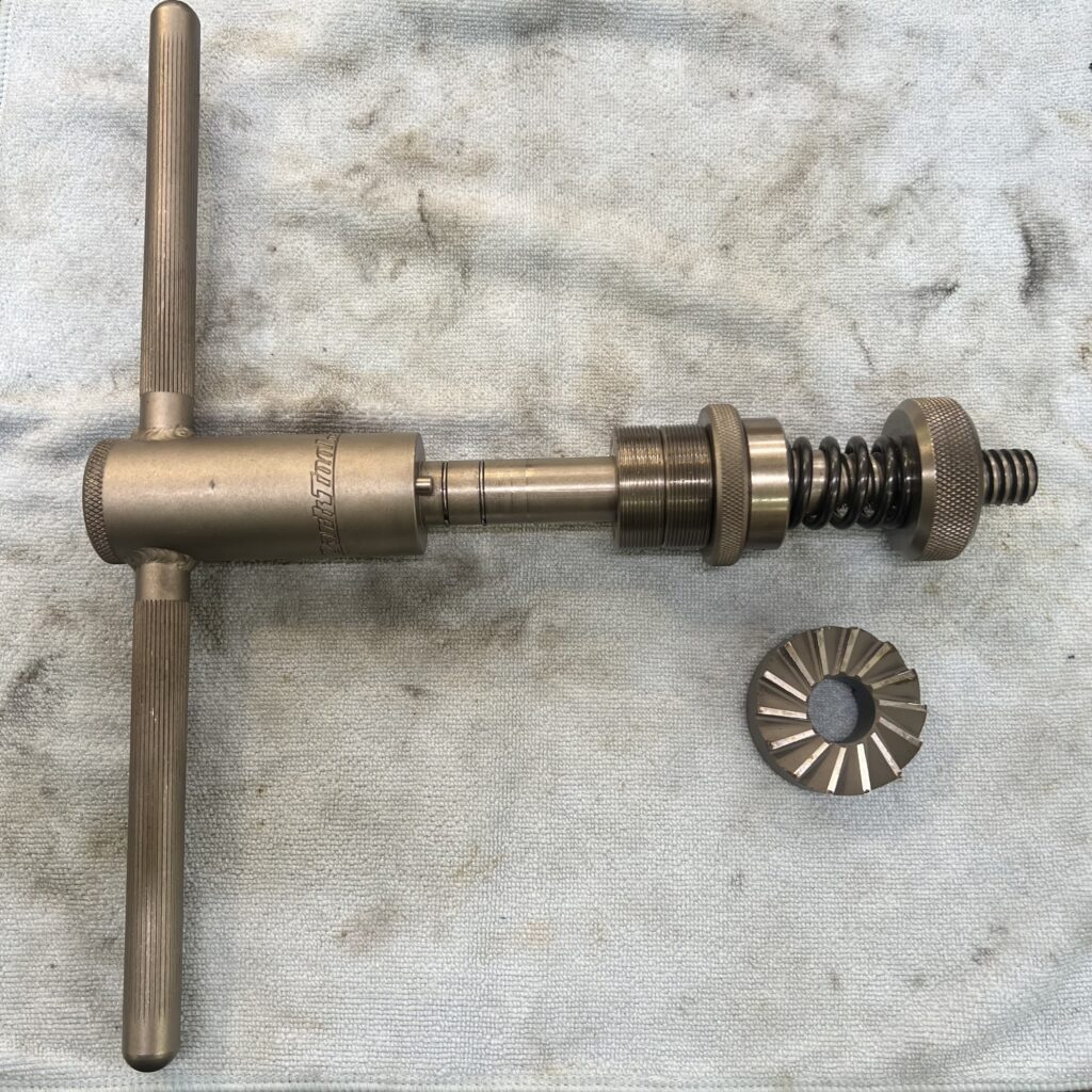 まず先程切削したタップ(ねじ山)に芯を出す治具を挿入します