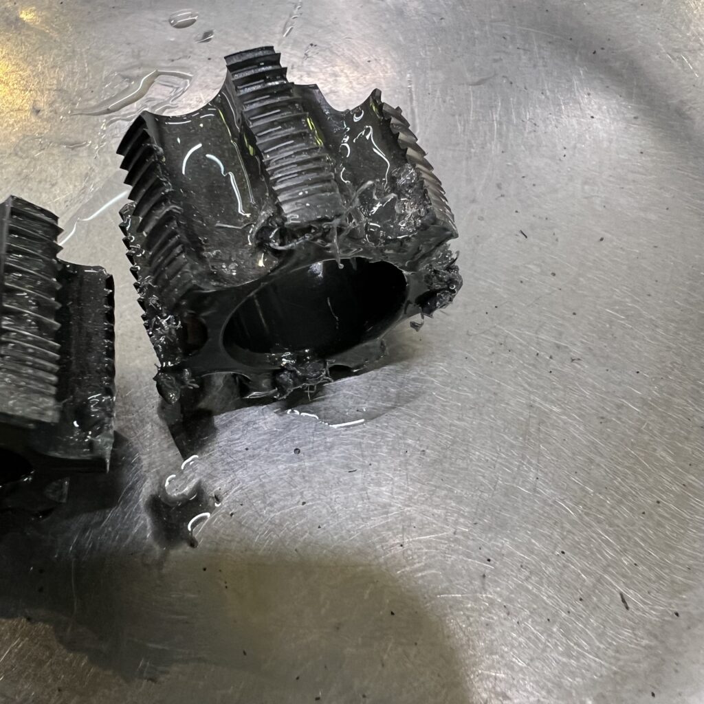 切削油をかけながら回転させますが切削しすぎないようにゆっくりと