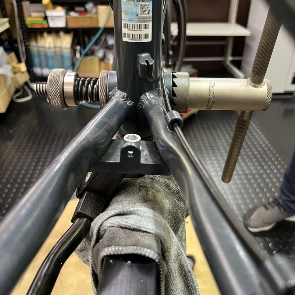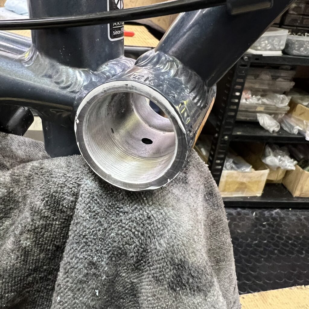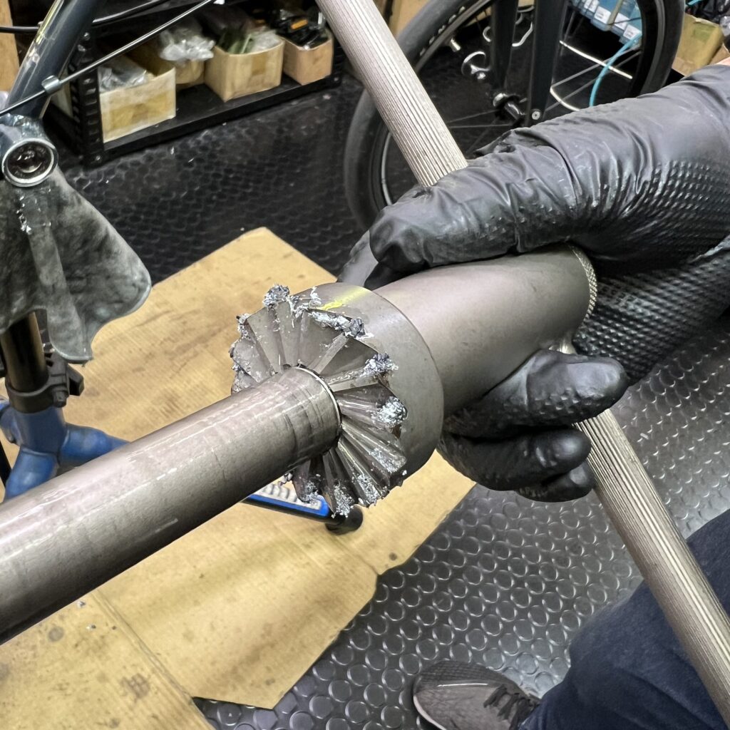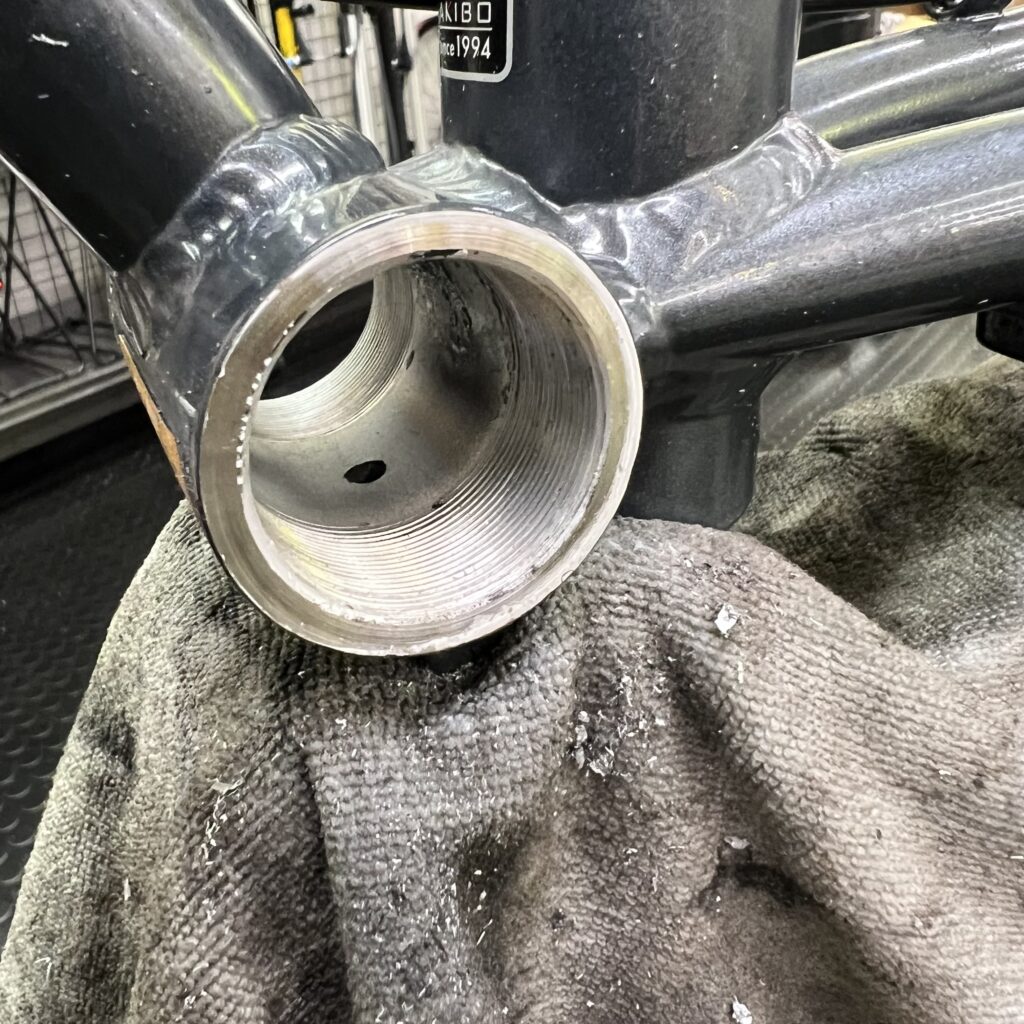 フレームを制作する時、ネジを切ったBBやパイプを繋いで溶接するので