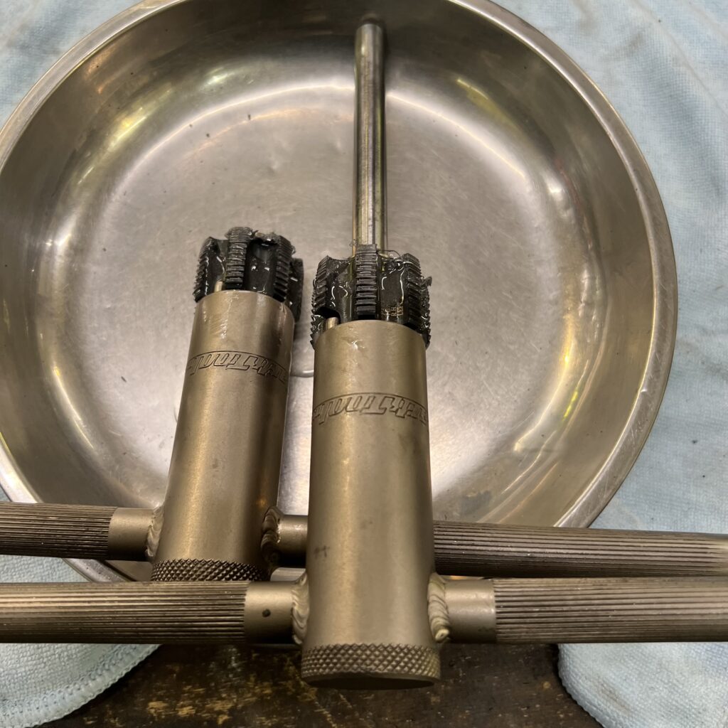 まず先程切削したタップ(ねじ山)に芯を出す治具を挿入します