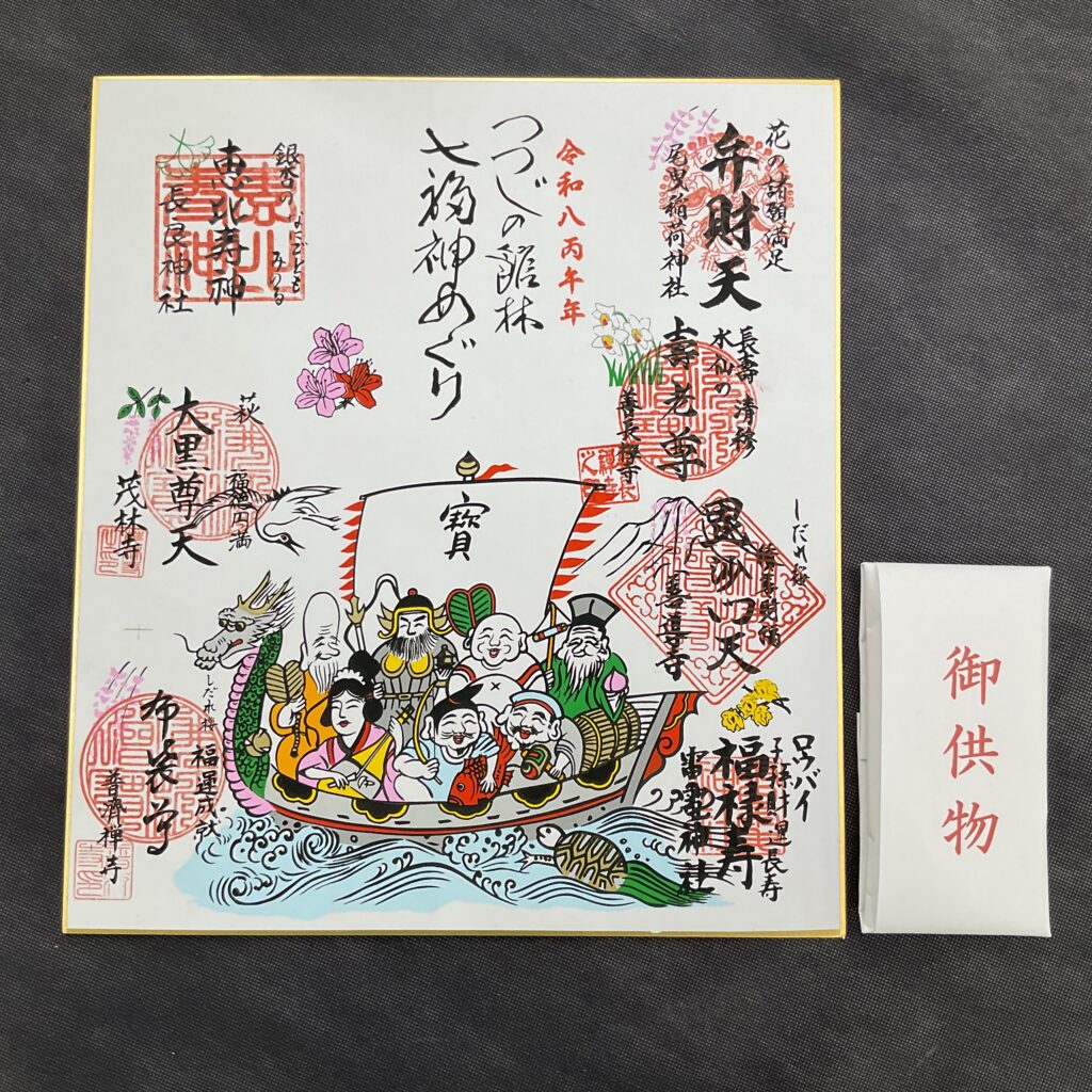 8ベースの宝船色紙を購入して各神社仏閣で参拝印を頂きます