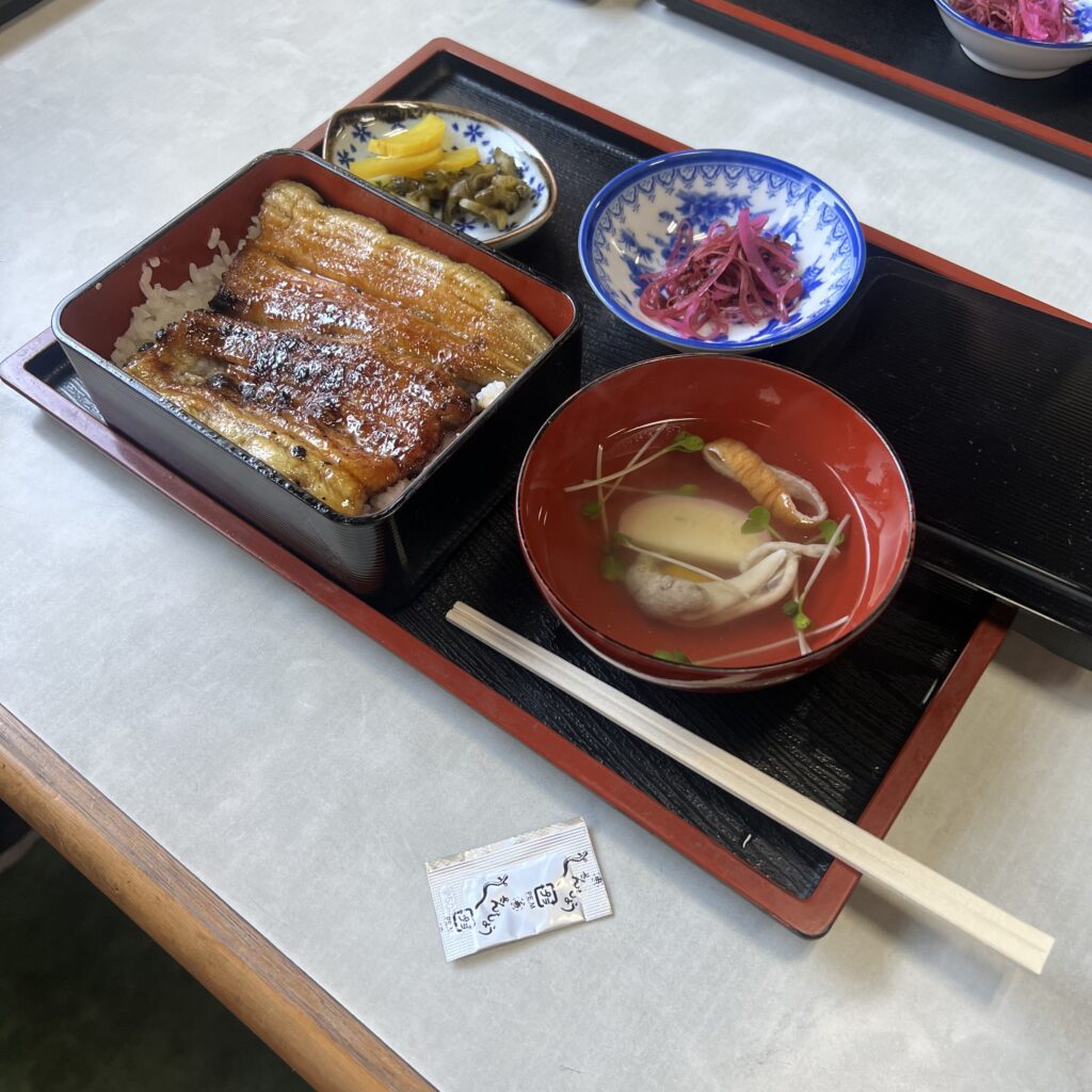 雷電神社境内にある川魚料理の「林家」でウナギを食べます